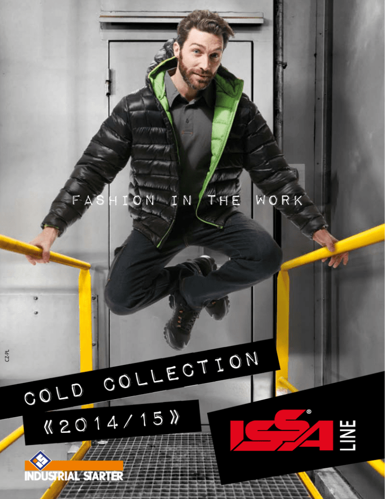 CZ-PL FASHION IN THE WORK N O I T C E L L O C COLD » 5 1 / 4 1 0 «2 Navrhli jsme nové oblečení a mysleli při tom na lidi, kteří je používají při práci , a proč ne ... i ve svém volném čase . EBEC U Q W NE Z entuzjazmem i bez ograniczeń. Stworzyliśmą nową odzież z myślą o ludziach, którzy wykorzystają ją w pracy i dlaczego nie ... nawet w czasie wolnym. CORK © 2014 INDUSTRIAL STARTER S nadšením a ... bez omezení. ISSALINE © 2014 INDUSTRIAL STARTER 1 Limitovaná edice ... Limited Edition... EBEC U Q W NE CORK Oděvy limitované edice jsou navrženy pro značku ISSA Produkty z edycji limitowanej są szczególną propozycją a liší se stylem, použitím materiálů a barevnou kombi- w ofercie Issa. W rzeczywistości różnią się stylem, manací, která bude jistě velmi dobrým obchodním artiklem. teriałem i są przeznaczone dla różnych rodzajów działalności. Należy oceniać je z innym podejściem i większą uwagą. 2 WENGE N © 2014 INDUSTRIAL STARTER G VIKIN www.industrialstarter.com G N I K I V 04728 VIKING (barva 025 béžová ) Přímo ze světa oděvů určených do extremních horských podmínek , určitě novinka v prostředí oděvů určených k práci. Podlepená náprsní kapsa , dvě přední kapsy . Složení : 100 % polyester mikro fleece 300 g / m² s softshellová vložka, membrána 8000mm/800mvp . Velikosti : S - 3XL Barva: béžová s černými doplňky. Balení : 10 ks 04728 VIKING © 2014 INDUSTRIAL STARTER (025 kolor beżowy) Kurtka jest absolutną nowością w świecie odzieży roboczej. Inspiracją przy jej projektowaniu była odzież górska. Wyposażona jest w taśmową kieszeń na piersi, dwie kieszenie przednie i wewnętrzne mankiety w nadgarstkach. Kurtka jest ocieplana. Skład: 100% poliester, polarowa podszewka z wstawkami softshell 300 gr/m2, 8000mm/800mvp. Rozmiary: S – M – L – XL – 2XL – 3XL Kolor: beżowy z czarnymi wstawkami Pakowanie: 10 szt. ISSALINE 3 CORK 04001 CORK ( černá barva 060 ) Cork je módní vesta , plná detailů a barev v souladu se současnými módními trendy . Vodotěsná tkanina , odnímatelná kapuce , tři vnější kapsy s doplňky vysoké viditelností i v zadní části Složení : 100 % nylon 210T s PU povrchovou úpravou , vnitřní anti- pill microfleece zelená 180 gr / m² . . Velikosti : S - 3XL Barva : černá se zelenými doplňky Balení : 10 ks O4001 4 © 2014 INDUSTRIAL STARTER CORK (060 kolor czarny) CORK jest nowoczesną kamizelką, posiadającą kilka ciekawych detali. Jej styl jest zgodny z aktualnymi trendami mody. Kamizelka posiada wodoodporną powłokę, odpinany kaptur oraz trzy kieszenie zewnętrzne z wstawkami o wysokiej widoczności. Dodatkowo tył wyposażony jest w identyczną wstawkę. Skład: 100% nylon powlekany PU, zielona, niemechacąca polarowa podszewka, gramatura 180gr/m2 Rozmiary: S – M – L – XL – 2XL – 3XL Kolor: czarny z zielonymi wstawkami Pakowanie: 10 szt. www.industrialstarter.com C E B E U Q W E N 04095N NEW QUEBEC ( černá barva 060 ) Moderní a lehká péřová bunda ( syntetická ), u které je lehkost a jemnost silnou stránkou . Styl a barvy jsou v souladu se současnými módními trendy . Vybavena kapucí , dvěma předními kapsami a má dvě velké vnitřní kapsy ; Elastický pas pro lepší uchycení k tělu . Složení : 100 % nylon 210T s PU zátěrem. Velikosti : S - 3XL Barva : černá se zelenými doplňky. Balení : 10 ks 04095N © 2014 INDUSTRIAL STARTER NEW QUEBEC (060 kolor czarny) QUEBEC jest nowoczesną i świetnie wyglądającą kurtką syntetyczną, niezwykle lekką i miękką. Jej styl jest zgodny z aktualnymi trendami mody. Kurtka posiada kaptur, dwie zewnętrzne i dwie wewnętrzne kieszenie oraz jest elastyczna w pasie. Skład: 100% nylon, syntetyczna wyściółka (PU) Rozmiary: S – M – L – XL – 2XL – 3XL Kolor: czarny z zielonymi wstawkami Pakowanie: 10 szt. ISSALINE 5 WENGEN + velikost/rozmiar XS 04727 WENGEN (Limitovaná edice) (barva 080 šedá ) CE MINIMÁLNÍ RIZIKA Bunda s odepínací kapucí z úpletu. Voduodpudivá úprava, prodyšná s membránou proti větru. Kombinovaná s materiálem Softschell. Bunda Wengen je ideální pro vlastnosti pletenin jako je hřejivost a měkkost, přesto nepostrádá technické vlastnosti tkanin poslední generace (softschell a memránTPU) Oděv má 2 přední kapsy, jednu náprsní a jednu na ruvávu. Vnější Materiál: 30% vlna, 70% polyester kombinace Softschell polyester/spandex. Membrána: TPU 8000mm/800mvp Zpracování: anti - piling Vnitřní Materiál: mikroflis Velikosti: XS-S-M-L-XL-XXL-3XL Barva: šedá s černou kombinací. Balení: 10 kusů v kartonu 04727 6 © 2014 INDUSTRIAL STARTER WENGEN (Kolor 080 szary ) CE ryzyko minimalne Kurtka z dzianiny z odpinanym kapturem. Wodoodporna, ułatwiająca swobodny przepływ powietrza, z membraną przeciwwiatrową. Połączenie materiału Softshell. Kurtka Wengen jest idealna dla tych, którzy cenią sobie miękkość i ciepło typowe dla swetrów a jednocześnie nie chcą rezygnować z nowoczesnej technologii, która przejawia się tu w zastosowaniu softshell i membran TPU. Kurtka ma 2 kieszenie przednie, jedną na piersiach i jedną na rękawie. Materiał zewnętrzny: 30% wełna, 70% poliester ze wstawkami z Softshell, poliester/spandex. Membrana: TPU 8000mm/800mvp Wykonanie: anti-pilling (nie mechaci się) Rozmiary: XS-S-M-LXL-XXL-3XL Kolor: szary z czarnymi wstawkami Pakowanie: 10 sztuk w kartonie. www.industrialstarter.com Myslete prakticky. Kolekce řady ISSA LINE je realizována z technických , funkčních a univerzálních materiálů. Pro všechny ty, kteří hledají pohodlné oblečení i ve svém volném čase. Zaprojektowana dla wygody. Kolekcja ISSA LINE stworzona jest z tkanin profesjonalnych, funkcjonalnych i uniwersalnych. Dla wszystkich tych, którzy szukają wygodnej odzieży do użytku w czasie wolnym. CLASH SOFTSHELL © 2014 INDUSTRIAL STARTER stz./str 15 ISSALINE 7 NARV