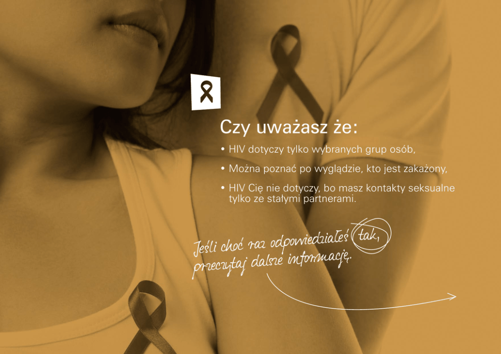 Czy uważasz że: • HIV dotyczy tylko wybranych grup osób, • Można poznać po wyglądzie, kto jest zakażony, • HIV Cię nie dotyczy, bo masz kontakty seksualne tylko ze stałymi partnerami. ak, t ś e ł ia z d ie w o p d Jeśli choć raz o . ę j c a m r o f in e z ls przeczytaj da HIV może dotyczyć każdego, kto jest HIV to ludzki wirus upośledzenia aktywny seksualnie i choć raz miał kon- odporności. Obecnie głównie przenosi takt bez zabezpieczenia prezerwatywą się drogą kontaktów seksualnych. z osobą z przeszłością seksualną. Można się nim również zakazić przez Ponad 50% zakażonych HIV IE w Polsce NIE W iu. o swoim zakażen Przez wiele lat zakażenie HIV nie daje objawów widocznych, wiec tylko wykonanie testu może potwierdzić lub wykluczyć zakażenie. lsce , Codziennie, w Poą się 3 osoby dowiaduj iu. o s woim zakażen Są to przede wszystkim ludzie młodzi między 20 a 39 rokiem życia. W codziennych kontaktach nie można zakazić się HI V. kontakt z zakażoną krwią, kiedy dosta- Przebywając w tym samym pokoju, nie się ona do krwiobiegu poprzez korzystając z tej samej łazienki do otwartą ranę bądź błony śluzowe w zakażenia nie może dojść. Osoby oku, nosie, jamie ustnej, narządach zakażone mają takie same prawa jak płciowych i odbycie. inni ludzie. Kobieta z HIV będąc Przez ponad 10 lat, można nie być w ciąży może uchronić swoje nienarodzone dziecko przed zakażeniem. Dzięki postępowi medycyny udało świadomym zakażenia. HI V nie widać. Wiedza o swoim zakażeniu ratuje Nie czekaj. Zrób test na HIV i nie żyj w niepewności. Badanie w kierunku HIV można zrobić bezpłatnie i anonimowo. się ograniczyć ryzyko przeniesienia życie. Niewykryty wirus po wielu latach wirusa z matki na dziecko do mniej niż rozwija się w pełnoobjawowe AIDS 1 %. Mimo to ciągle rodzą się dzieci badanie można wykonać dostępna jest i często jest za późno, by włączyć zakażone HIV, bo kobiety, będąc w na stronie skuteczne leczenie. ciąży nie robią testów w kierunku HIV. Pełna lista adresów miejsc, gdzie takie www.aids.gov.pl Materiał został opracowany we współpracy z Fundacją Edukacji Zabezpieczaj się! Jeśli masz partnera, który nie wykonał testu na HIV, jedyną możliwością ograniczenia ryzyka zakażenie jest prezerwatywa. Poprawnie użyta (jeśli nie pęknie i nie zsunie się) jest barierą dla wirusa. Społecznej
