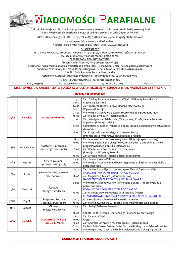 wiadomości parafialne - Lokalna Polska Misja Katolicka w Slough