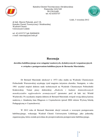 Recenzja - Wydział Chemii UŁ