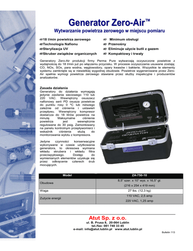zeroair_pl - Ulotka informacyjna generatora Zero-Air - Atut