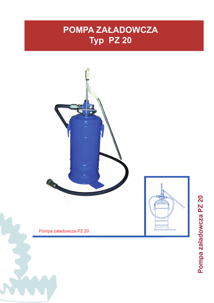 Pompa załadowcza PZ 20 Pompa załadowcza PZ 20 POMPA ZAŁADOWCZA Typ PZ 20 Zastosowanie Pompa jest przeznaczona do napełniania smarem plastycznym zbiorników pomp centralnego smarowania typu PR 14 i innych. Może być stosowana również do napełniania środkami smarującymi innych pojemników. Budowa 2 Pompa do napełniania jest pompą tłokową z napędem ręcznym i składa się z następujących zespołów: zbiornika smaru z talerzem dociskowym i uchwytem, dźwigni napędowej połączonej z tłokiem, zespołu tłoczącego połączonego z pokrywą zbiornika; złożonego z cylindra, zaworu ssącego oraz tłoka z zaworem tłoczącym, przewodu elastycznego do podłączenia do króćca załadowczego w napełnianym zbiorniku, zakończonego końcówką nakrętną. Działanie Pompa uzyskuje napęd od dźwigni. Napęd ten jest przekazywany tłokowi, który wykonuje ruchy posuwistozwrotne. W czasie ruchu ssącego następuje zassanie smaru ze zbiornika do przestrzeni skokowej w cylindrze. Podczas ruchu powrotnego tłoka, porcja smaru znajdująca się w cylindrze zostaje wytłoczona przewodem elastycznym do napełnianego zbiornika. Talerz dociskowy opada wraz z ubytkiem zawartości zbiornika, co zabezpiecza przetłaczany smar przed zapowietrzeniem się oraz ułatwia jego zasysanie. Zbiornik pompy załadowczej jest napełniany materiałem smarującym po zdjęciu pokrywy wraz z zespołem tłoczącym. Pompa załadowcza PZ 20 Dane Techniczne 44 Wydajność pompy Ciśnienie nominalne Pojemność zbiornika Rodzaj przetłaczanych środków smarowniczych Temperatura pracy Długość przewodu elastycznego Masa pompy bez smaru Sposób zamawiania W zamówieniu należy podać nazwę i typ pompy. 30 cm3/skok tłoka 1,6 MPa 12 dm3 smary plastyczne o klasie konsystencji <1 wg PN-72/C-04095 (NLGI) -10 ... 60°C 3m ~17 kg Rys. 1 Wymiary pompy Producent i Dystrybutor Zakłady Automatyki „Polna” S.A. ul. Obozowa 23, 37-700 Przemyśl telefon: 16-678-66-01 fax.: 16-678-65-24 e-mail: [email protected] www.polna.com.pl Pompa załadowcza PZ 20 M33 x 2 2 45