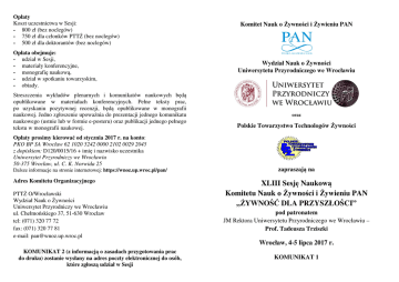 Pobierz Komunikat nr 1 - Wydział Nauk o Żywności