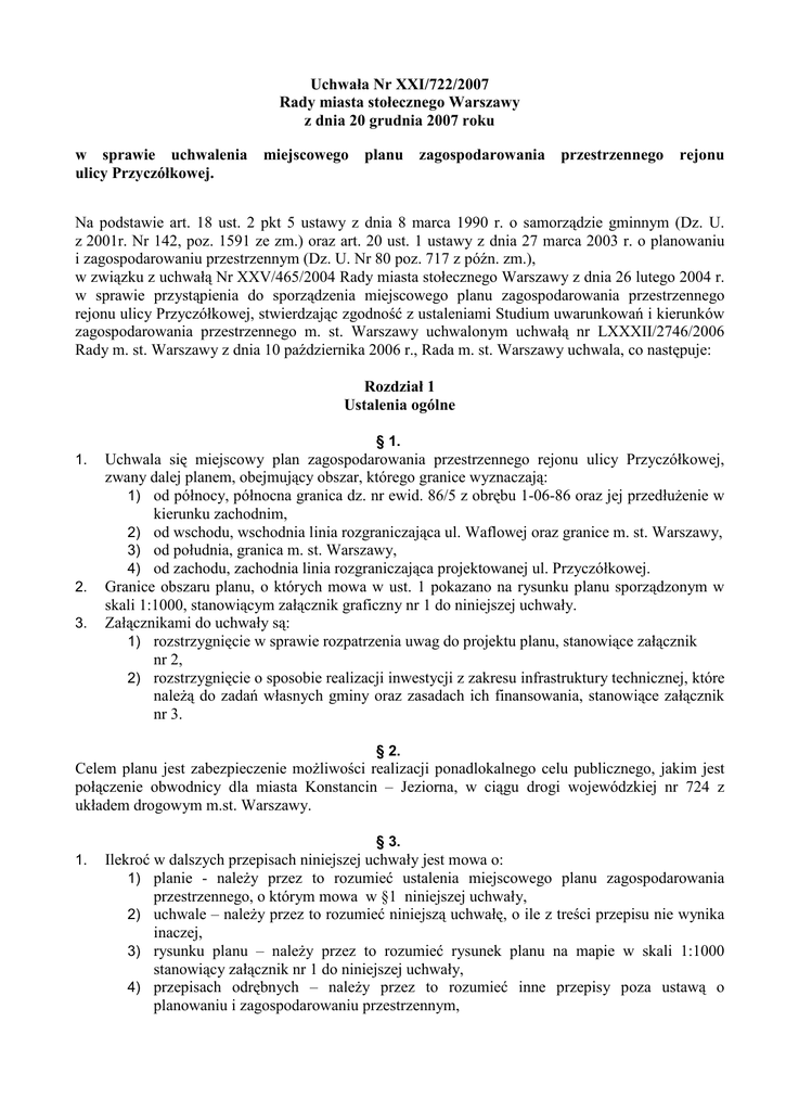 Uchwała Nr XXI/722/2007 Rady miasta stołecznego Warszawy z
