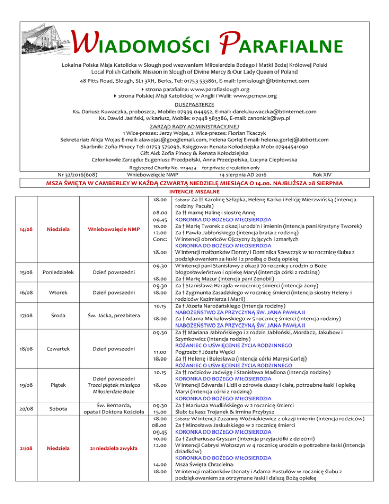 wiadomości parafialne - Lokalna Polska Misja Katolicka w Slough