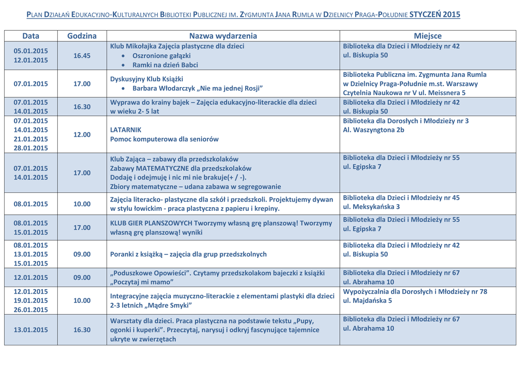 Plan działań edukacyjno-kulturalnych w styczniu 2015