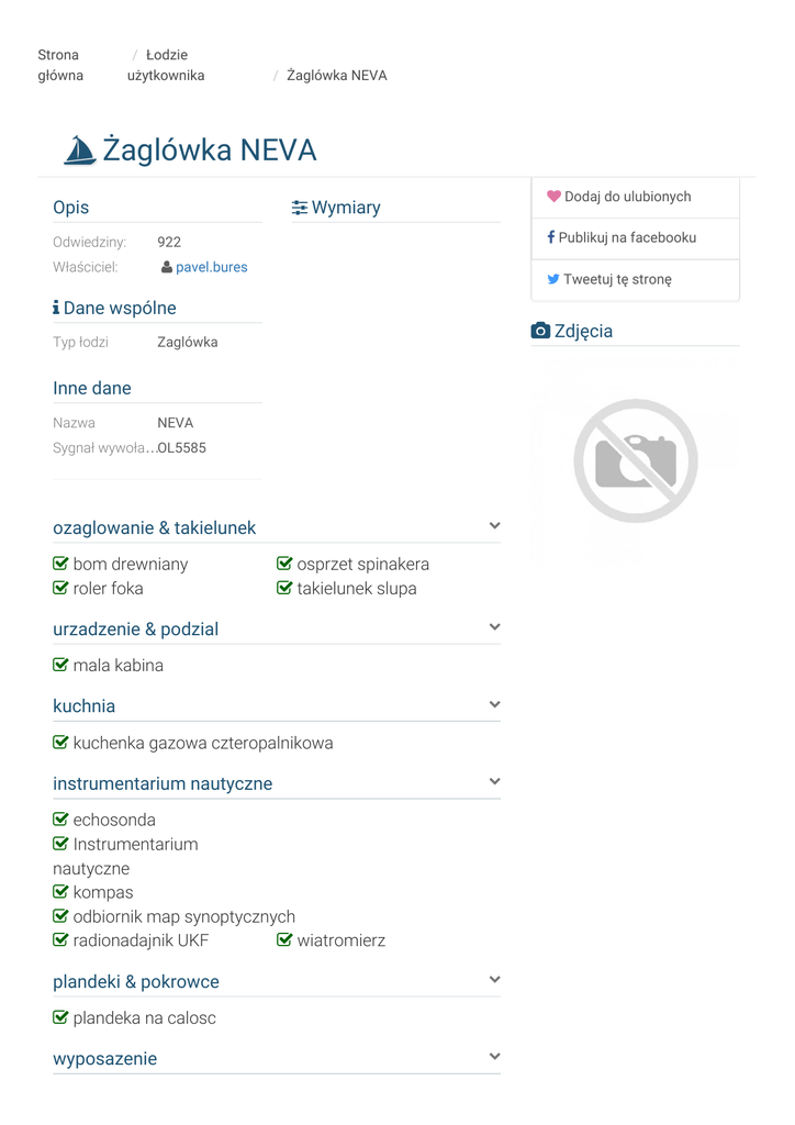 Łódź użytkownika: Żaglówka NEVA | Portmaps.com