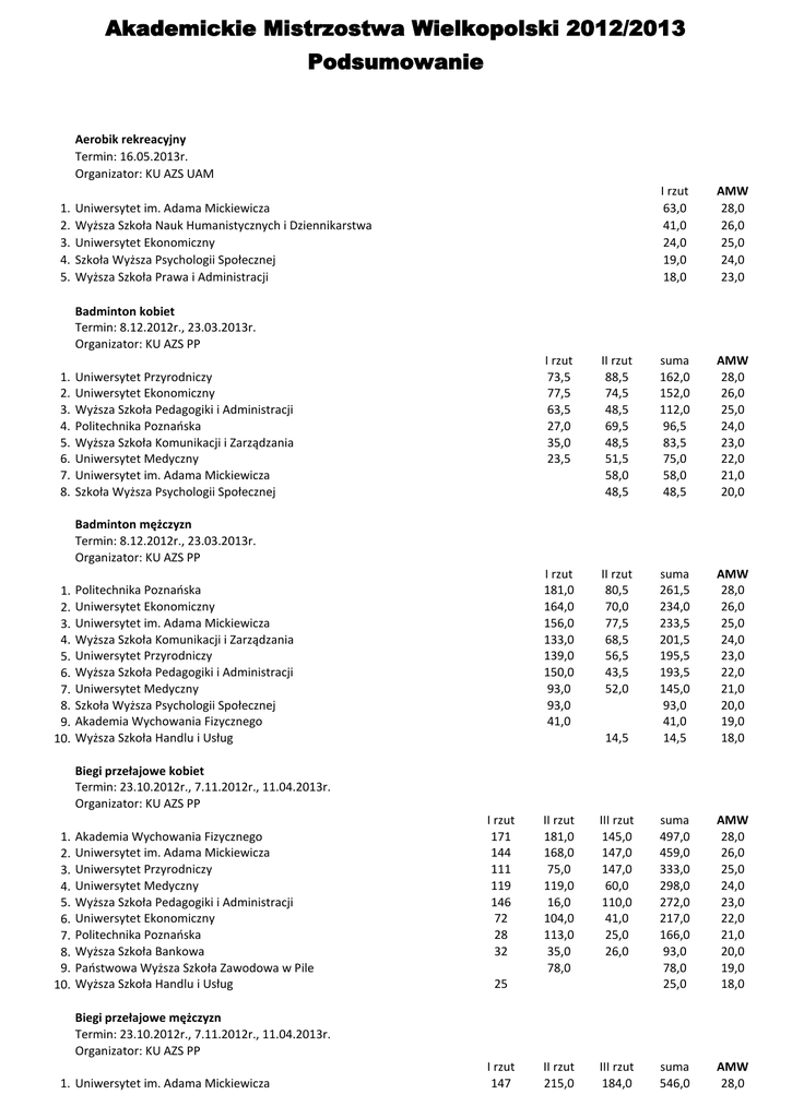 Akademickie Mistrzostwa Wielkopolski 2012/2013 Podsumowanie