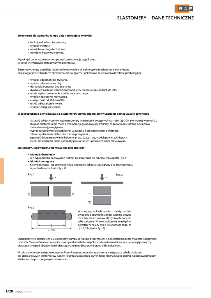 elastomery – dane techniczne - RAF