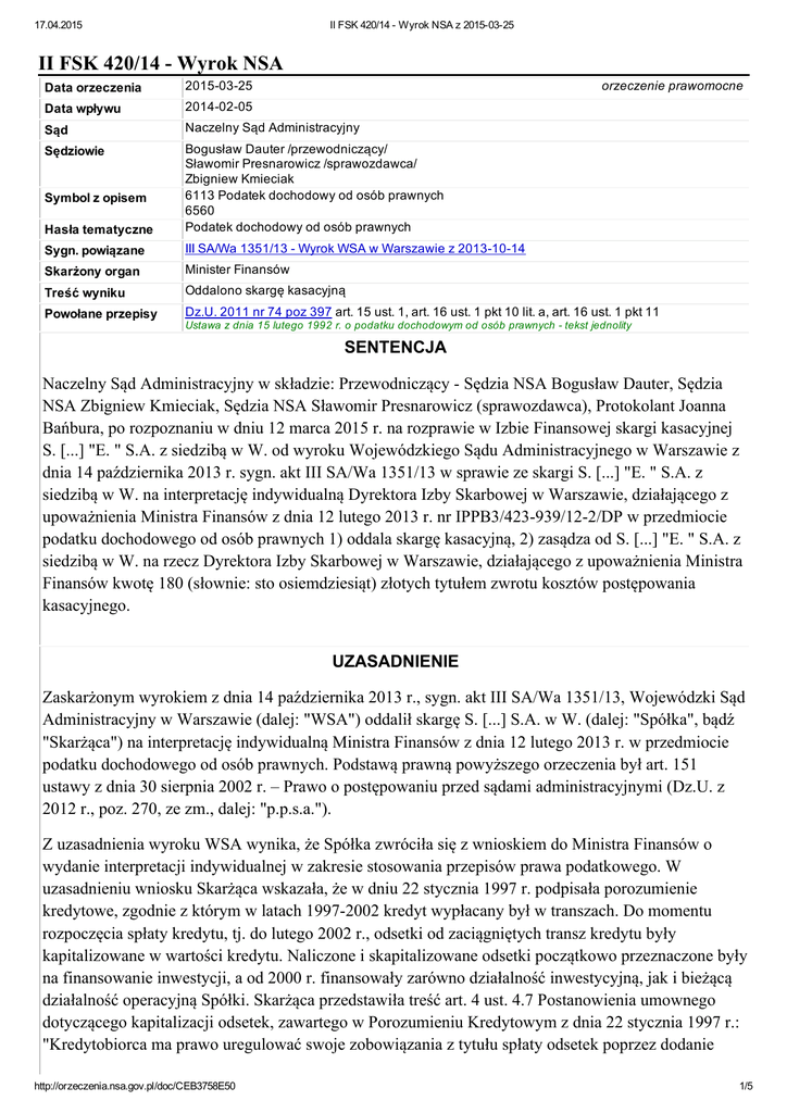 II FSK 420/14 Wyrok NSA z 20150325