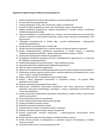 Zagadnienia egzaminacyjne Publiczne prawo gospodarcze 1