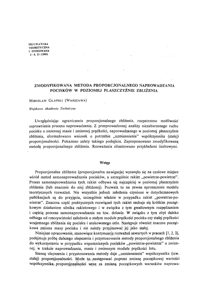 1. M . G LAP SKI, Ograniczenia proporcjonalnej nawigacji w ogólnym przypadku naprowadzania kierowanych