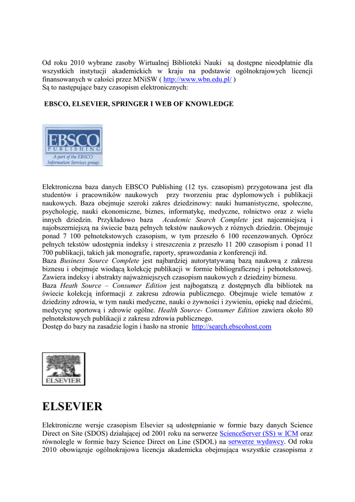 bezpośrednio przez Elsevier (np Cell i Clinics).Każdy uczestnik licencji Elsevier 2010 uzyska