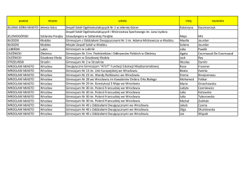 powiat miasto szkoła imię nazwisko JELENIA GÓRA MIASTO