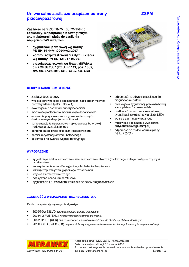 Uniwersalne zasilacze urządzeń ochrony przeciwpożarowej ZSPM