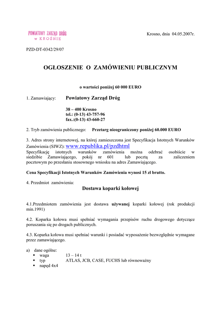 og£oszenie o zamówieniu - Powiatowy Zarząd Dróg w Krośnie