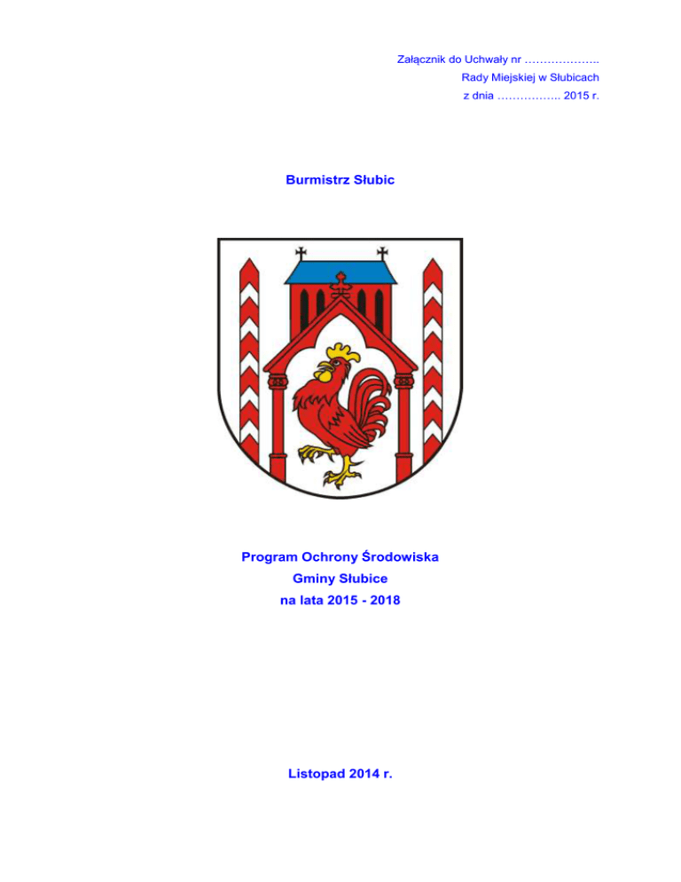 Załącznik do Uchwały nr ……………….. Rady Miejskiej w Słubicach z dnia …………….. 2015 r. Burmistrz Słubic Program Ochrony Środowiska Gminy Słubice na lata 2015 - 2018 Listopad 2014 r. Program Ochrony Środowiska Gminy Słubice na lata 2015-2018 Spis treści 1. Wstęp 4 1.1 Podstawa opracowania 4 1.2 Główne założenia programu 4 1.3 Cel programu 5 1.4 Zawartość programu 5 2. Charakterystyka i ocena aktualnego stanu środowiska, zasobów naturalnych oraz technicznej infrastruktury ochrony środowiska 6 2.1 Ogólna charakterystyka gminy 6 2.2 Zasoby przyrody 7 2.2.1 Obszary Natura 2000 8 2.3 Szata roślinna 16 2.4 Fauna 18 2.5 Obiekty proponowane do ochrony prawnej 19 2.5.1 Rezerwaty przyrody 19 2.5.2 Użytki ekologiczne 20 2.5.3 Pomniki przyrody 20 2.6 Geologia i geomorfologia 20 2.7 Gleby, użytki rolne 21 2.8 Klimat 22 2.10 Zasoby wodne 23 2.11 Zasoby surowców naturalnych 25 2.12 Techniczna infrastruktura ochrony środowiska 25 2.12.1 Wodociągi i kanalizacja 25 2.12.2 Składowiska odpadów stałych i ich utylizacja 27 2.12.3 Ciepłownictwo 29 2.12.4 Energia elektryczna 30 2.12.5 Gaz 30 3. Zagrożenia środowiska przyrodniczego Gminy Słubice 31 3.1 Ocena stanu przyrody ze wskazaniem zagrożeń 31 3.2 Odpady niebezpieczne 33 2 Program Ochrony Środowiska Gminy Słubice na lata 2015-2018 3.3 Odpady zawierające azbest 34 3.4 Źródła nadzwyczajnych zagrożeń środowiska i zdrowia ludzi 35 3.5 Ochrona przeciwpowodziowa 36 4. Założenia wyjściowe programu ochrony środowiska 38 4.1 Analiza obowiązującego stanu prawnego 38 4.2 Prawodawstwo w zakresie ochrony środowiska i jego dostosowanie do wymogów unii europejskiej 39 4.3 Konwencje i porozumienia międzynarodowe 39 4.4 Kierunki rozwoju Gminy Słubice 40 4.5 Założenia polityki ekologicznej w odniesieniu do gminy 41 5. Cele i priorytetowe działania ekologiczne 42 5.1 Cele programu ochrony środowiska Gminy Słubice 42 5.2 Zadania realizacyjne 44 5.2.1 Cel i zadania w zakresie ochrony przyrody i krajobrazu 44 5.2.2 Cel i zadania w zakresie ochrony gleb i powierzchni ziemi 45 5.2.3 Cel i zadania w zakresie ochrony wód podziemnych i powierzchniowych 45 5.2.4 Cel i zadania w zakresie gospodarki odpadami 45 5.2.5 Cel i zadania w zakresie ochrony powietrza 46 5.2.6 Cel i zadania w zakresie ochrony przed hałasem i promieniowaniem 46 5.2.7 Cel i zadania w zakresie monitoringu środowiska i badań naukowych 47 5.2.8 Cel i zadania w zakresie działań edukacyjnych, informacyjnych i promocyjnych w dziedzinie ochrony przyrody 53 5.2.9 Zadania w zakresie konsekwencji egzekucji przepisów prawnych 53 6. Harmonogram realizacji przedsięwzięć i uruchamiania środków finansowych 54 7. Monitoring i zarządzanie środowiskiem 54 7.1 Monitoring stanu środowiska 55 7.2 Monitoring polityki ekologicznej 55 7.3 Zarządzanie programem 56 8. Piśmiennictwo i materiały wykorzystane do opracowania programu 56 9. Załączniki 59 3 Program Ochrony Środowiska Gminy Słubice na lata 2015-2018 1. Wstęp Program ochrony środowiska ma za zadanie pomoc w rozwiązywaniu istniejących problemów, a także przeciwdziałać zagrożeniom które mogą pojawić się w przyszłości. W myśl z dnia 27 kwietnia 2001r. art. 17 Ustawy (Dz.U.2013.1232 j.t.) Prawo ochrony niniejszy środowiska program ochrony środowiska został opracowany zgodnie z polityką ekologiczną państwa. Wdrożenie programu umożliwi osiągnięcie celów założonych w tej polityce oraz realizację zasad, a także stworzenie i funkcjonowanie na analizowanym obszarze zintegrowanego zespołu instalacji i urządzeń służących ochronie środowiska naturalnego, spełniającego wymagania określone w nowych przepisach o ochronie środowiska. 1.1.Podstawa opracowania Opracowanie niniejszego programu ochrony środowiska wynika z: art. 17 Ustawy z dnia 27 kwietnia 2001r.Prawo ochrony środowiska (Dz.U.2013.1232 j.t.) - nakładającego na gminę obowiązek opracowania ww. programu. Program jest opracowywany na szczeblu gminnym. Projekt gminnego programu ochrony środowiska uchwala Rada Miejskiej w Słubicach po zasięgnięciu opinii Zarządu Powiatu Słubickiego. 1.2.Główne założenia programu W związku z tym, że istnieje ścisła zależność pomiędzy stanem środowiska, jakością jego poszczególnych komponentów i rozwojem gospodarczym regionu, w programie zaprezentowano: podejście sektorowe, w odniesieniu do analizy aktualnego stanu środowiska oraz monitorowania jego przyszłych zmian, podejście integralne, dotyczące określenia działań niezbędnych do realizacji w dziedzinie ochrony środowiska, związanych z głównymi kierunkami rozwoju gminy. 4 Program Ochrony Środowiska Gminy Słubice na lata 2015-2018 1.3.Cel programu Program ochrony środowiska daje wytyczne dla formułowania polityki ochrony środowiska w regionie. Zawarte w nim zadania pozwolą zapewnić odpowiednie warunki życia Długoterminowy mieszkańców cel programu przy zakładanym sformułowany został rozwoju gospodarczym. następująco: Ochrona i racjonalne wykorzystanie zasobów środowiska przyrodniczego szansą rozwoju Gminy Słubice. 1.4.Zawartość programu Identyfikacja najważniejszych walorów środowiska naturalnego i zagrożeń wynikających z zanieczyszczenia środowiska. Wskazanie działań inwestycyjnych, organizacyjnych oraz edukacyjnych zmierzających do poprawy stanu środowiska i zachowania równowagi ekologiczno społeczno - gospodarczej zgodnie z wymogami polityki ekologicznej państwa i dyrektywami UE. Oszacowanie niezbędnych nakładów na inwestycje proekologiczne oraz ustalenie priorytetów i źródeł ich finansowania. Ułatwienie starań o pomoc finansową podejmowanych przez władze samorządowe organizacje pozarządowe i podmioty gospodarcze w instytucjach krajowych i zagranicznych na realizację zadań proekologicznych. 5 Program Ochrony Środowiska Gminy Słubice na lata 2015-2018 2. Charakterystyka i ocena aktualnego stanu środowiska, zasobów naturalny