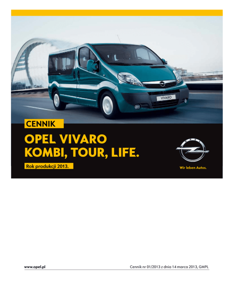 Opel Vivaro Kombi, Life, Tour cennik 2013