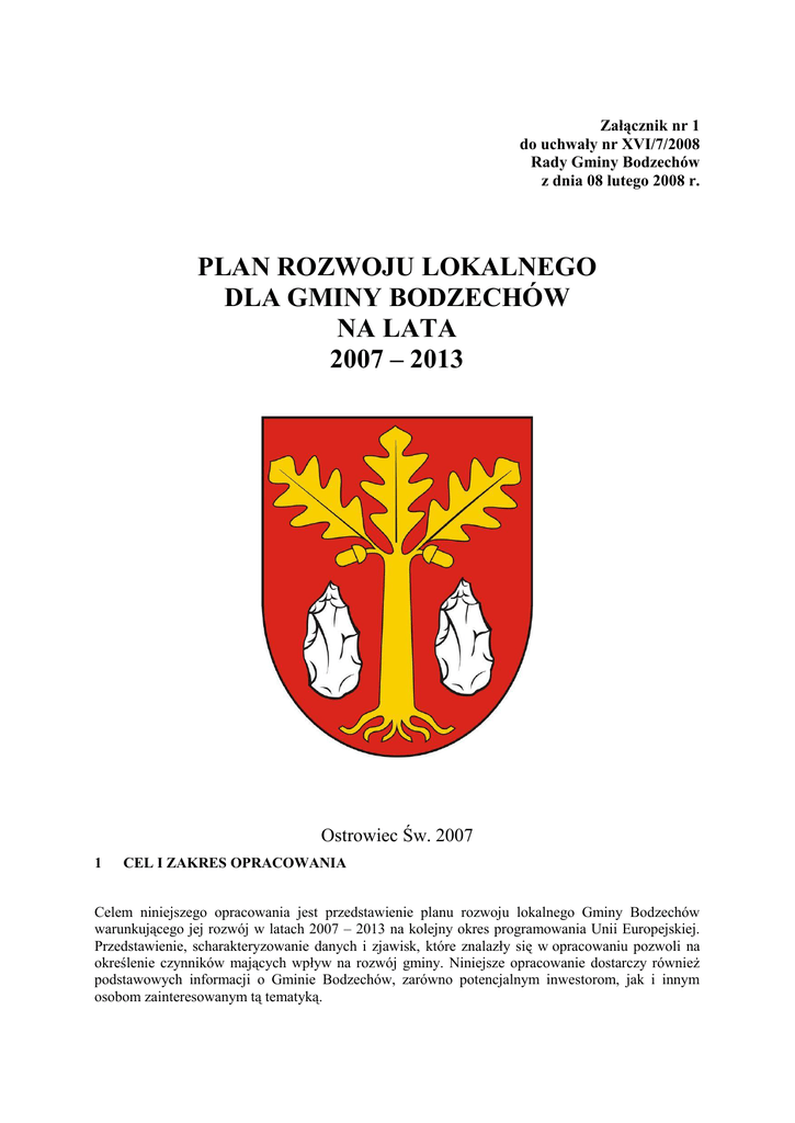 plan rozwoju lokalnego dla gminy bodzechów