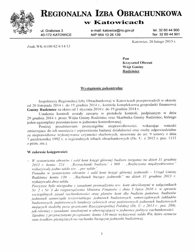 Hosz Zuslgpca W(tllu Gminy lludziniec. Infbrmucig zultvierclzilp Krzysztof Obrzut Woil GminvRudziniec.