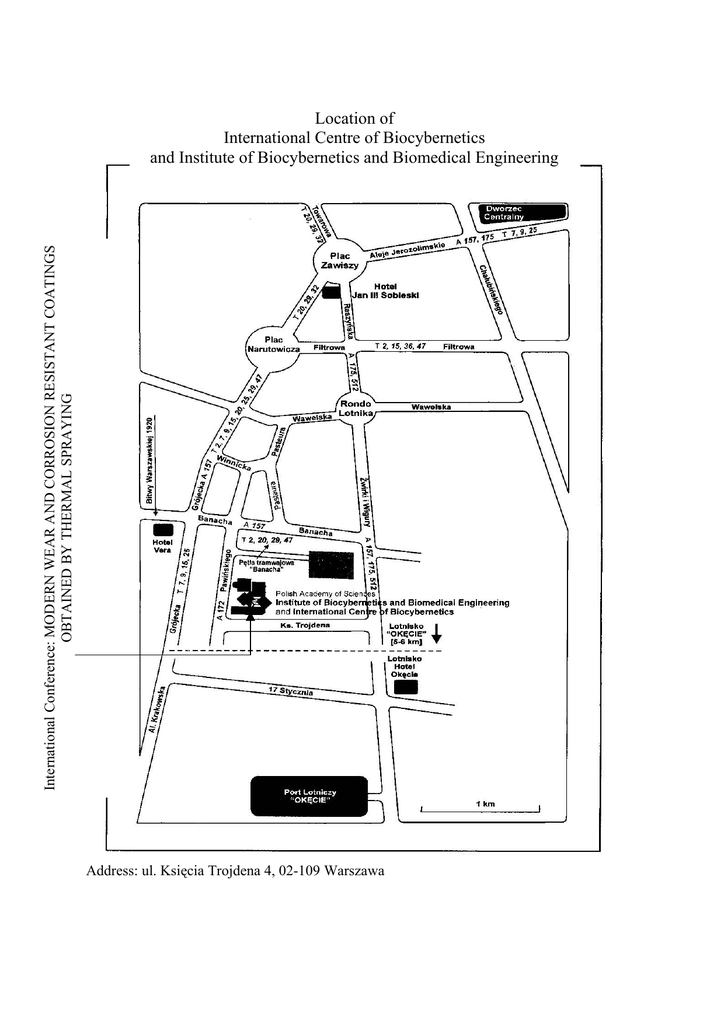 International Conference: MODERN WEAR AND CORROSION RESISTANT COATINGS OBTAINED BY THERMAL SPRAYING Location of International Centre of Biocybernetics and Institute of Biocybernetics and Biomedical Engineering Address: ul. Księcia Trojdena 4, 02-109 Warszawa
