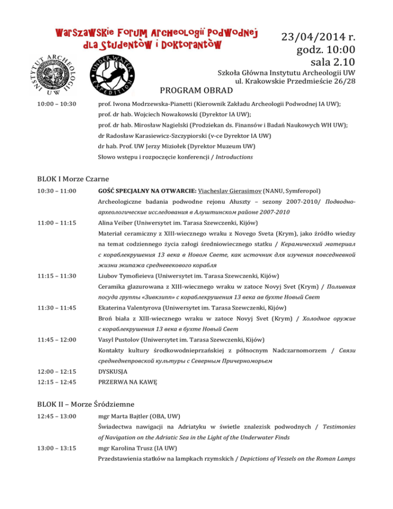 POPRAWIONY PROGRAM Warszawskiego Forum Archeologii