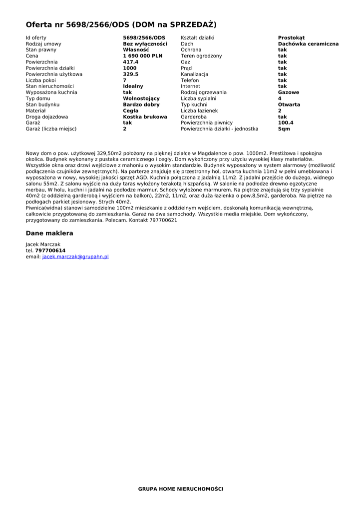 Oferta nr 5698/2566/ODS (DOM na SPRZEDAŻ)