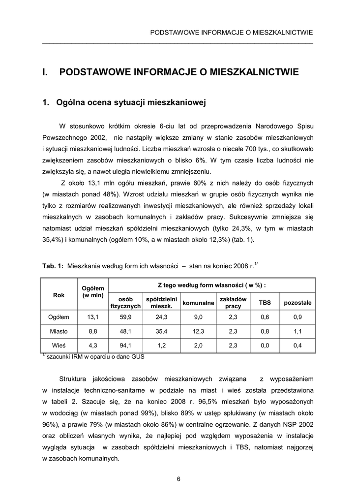 i. podstawowe informacje o mieszkalnictwie
