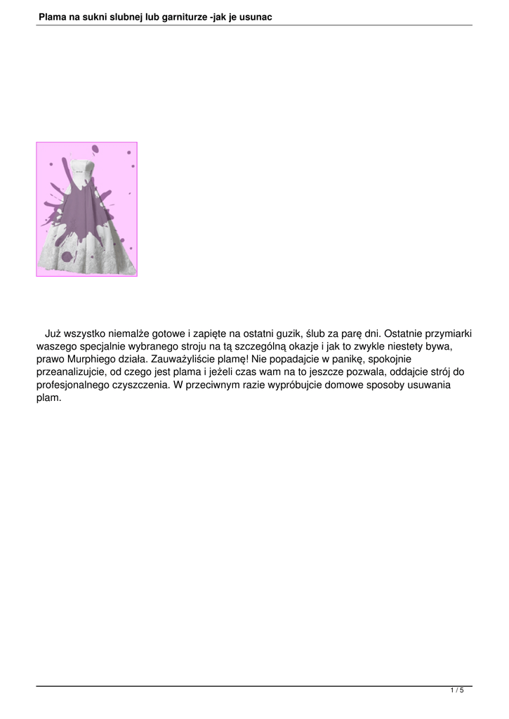 Plama na sukni slubnej lub garniturze -jak je - weselny