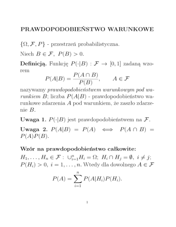 Definicją. Funkcję P (·|B) : F → [0, 1] zadaną wzorem