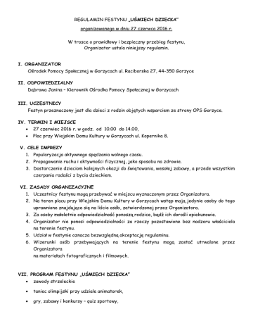 REGULAMIN FESTYNU „UŚMIECH DZIECKA” organizowanego w
