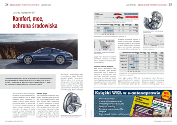 24 | TECHNICZNE PODSTAWY ZAWODU | MECHANIKA MECHANIKA | TECHNICZNE PODSTAWY ZAWODU | Układy napędowe ZF z 6-biegową przekładnią manualną Komfort, moc, ochrona środowiska 0-100 km/h: 4,9 sec / 10,3 l ze sprzęgłem podwójnym 0-100 km/h: 4,5 sec / 9,8 l Wpływ zastosowania dwusprzęgłowej konstrukcji przekładni na przyspieszenia samochodu oraz zużycie paliwa Masa Drgania skrętne [kg] [kgm2] Rodzaj napędu ND2015 250 11,7 0,0579 standardowy tylny ND2216 270 13,0 0,0820 standardowy tylny 400 600 800 1000 Główne dane techniczne podwójnych sprzęgieł ZF prędkość obrotowa 1. bieg sprzęgło tradycyjne sprzęgło podwójne 2. bieg 100-300 ms do 2000 ms Porównanie szybkości i płynności zmian biegów sprzęgła można stosować we wszystkich samochodach osobowych, a w szczególności w pojazdach o konstrukcji dynamiczno-sportowej. symalizują jednostajność obrotów, co pozwala na wcześniejsze, automatyczne przełączanie biegów dla obniżenia zużycia paliwa. Załączona tabela przedstawia główne dane techniczne najnowszych serii przetworników z pojedynczym tłu- Autonaprawa | Grudzień 2014 Podwójne sprzęgło współpracujące z 7-biegową skrzynią biegów 1000 1500 2000 2500 3000 3500 4000 4500 obroty [1/min] Porównanie działania tłumików drgań skrętnych Masa Drgania skrętne [kg] [kgm2] Rodzaj napędu NW235 TTD II 235 235 13,8 15,3 0,1186 0,1310 standarowy tylny NW250 TTD II 250 250 16,2 17,6 0,1590 0,1689 standarowy tylny NW270 TTD II 270 270 17,4 18,8 0,1843 0,1938 standarowy tylny 235 15,5 0,1471 standarowy NW250 ZDW II 250 18,0 19,3 0,2005 0,2079 standarowy tylny NW235 ZDW II 200 400 600 800 1000 Główne dane techniczne hydrokinetycznych przetworników momentu obrotowego firmy ZF mikiem drgań skrętnych (TTD) oraz przetworników z tłumieniem podwójnym (ZDW), a towarzyszący jej wykres porównuje charakterystyki działania tych dwu konstrukcyjnych wersji. Samoczynne blokowanie przetwornika hydraulicznego dodatkowym sprzęgłem mechanicznym umożliwia komfortową jazdę i to już Książki WKŁ w e-autonaprawie Fot. ZF Services Podwójne sprzęgło Jest to podzespół konstrukcyjnie zintegrowany ze specjalną wersją skrzyni biegów, umożliwiającą jednoczesny wybór dwóch kolejnych biegów i błyskawiczne ich wzajemne przełączanie. W systemie podwójnego sprzęgła występują dwa osobne sprzęgła, z których jedno współpracuje z biegami nieparzystymi, a drugie – z parzystymi. Jeden bieg jest wybierany przy włączonym sprzęgle, a drugi czeka już w gotowości do włączenia. Operacja przełączania biegów trwa kilka ułam- Fot. Carsshow.net, ZF Services Takie też trendy od wielu już dziesięcioleci wytycza w swej konstruktorsko-produkcyjnej działalności firma ZF, będąca światowym liderem rozwojowych innowacji w zakresie rozwoju systemów przeniesienia napędu. W obecnej fazie ich technicznej ewolucji doskonalone są zarówno tradycyjne rozwiązania mechaniczne, jak i różne gotowe do seryjnej produkcji koncepcje hybrydyzacji tych układów. Celem niniejszego artykułu jest prezentacja najistotniejszych firmowych osiągnięć w tej dziedzinie. ków sekundy – bez przerywania ciągłości przekazywania napędu. Sterowanie podwójnym sprzęgłem i skrzynią prze kładniową odbywa się za pomocą specjalnego systemu elektronicznego. Zastosowanie innowacyjnych tłumików drgań skrętnych zapewnia wyraźną redukcję zużycia paliwa przy równoczesnej poprawie komfortu jazdy. System podwójnego tłumik tradycyjny tłumik podwójny Zakres przenoszonych wartości momentu Średn. wirników [Nm] [mm] Przetwornik momentu obrotowego Dzięki licznym opracowaniom nowatorskich technologii nowa generacja przetworników marki ZF znajduje zastosowanie w automatycznych skrzyniach biegów samochodów osobowych. Zapewnienia ona maksymalny komfort i dynamikę jazdy przy znaczącej redukcji zużycia paliwa. Stosowane równocześnie systemy tłumików drgań skrętnych mak- Hydrokinetyczny przetwornik momentu ZF przyspieszenie kątowe [1/s²] Zakres przenoszonych wartości momentu Średnica tarcz [Nm] [mm] 200 Dostawcy samochodowych zespołów i podzespołów modernizują obecnie ich konstrukcje w celu obniżania zużycia paliwa i emisji spalin, redukcji mas i gabarytów oraz poprawy komfortu, bezpieczeństwa i dynamiki jazdy 25 ✔ Wejdź na stronę: www.e-autonaprawa.pl ✔ Wybierz przycisk KSIĄŻKI ✔ Przejrzyj katalog ✔ Zaznacz interesujące Cię pozycje ✔ Kup, nie odchodząc od komputera! 10% taniej Autonaprawa | Grudzień 2014