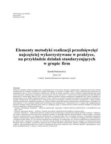 Elementy metodyki realizacji przedsięwzięć najczęściej