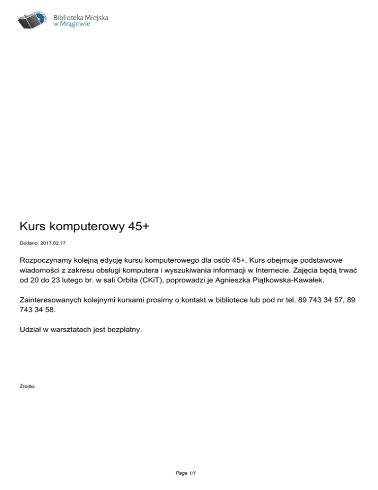 Kurs komputerowy 45+ - biblioteka.mragowo.pl