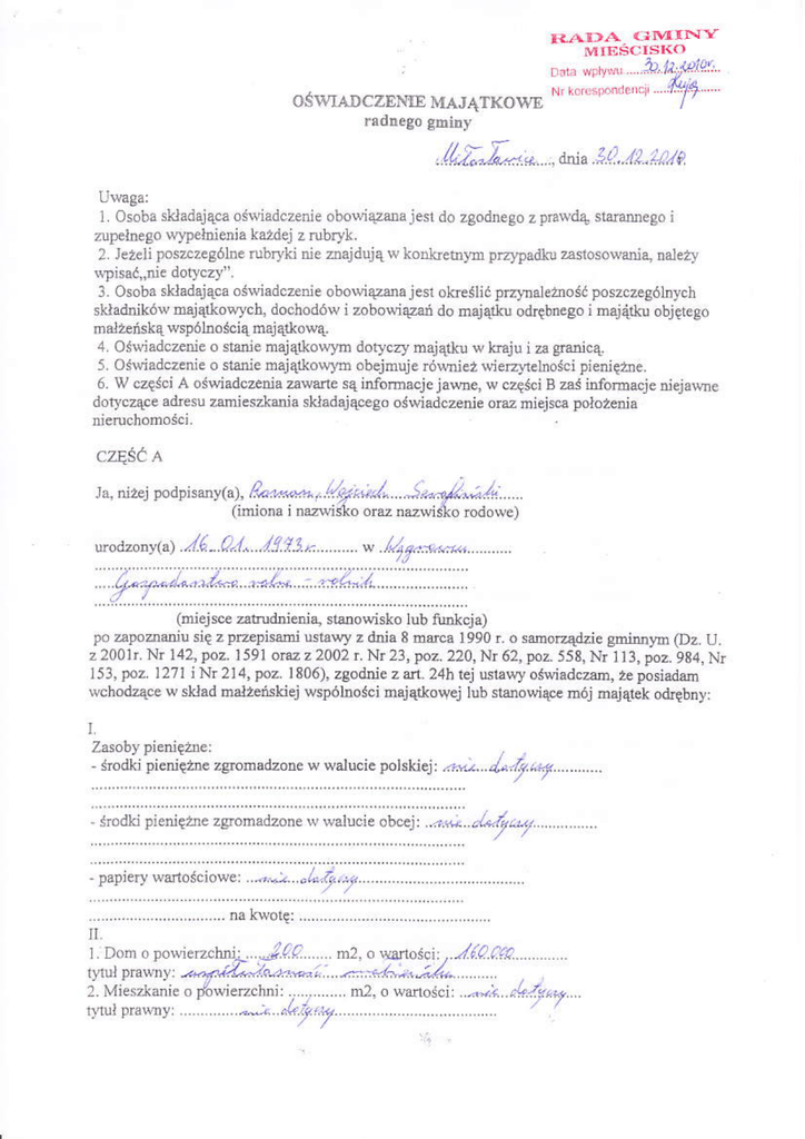 doiycząoe a.lieśU żmieszluia sk]adająceeó oświadczenie ore nj€jśoa położenia