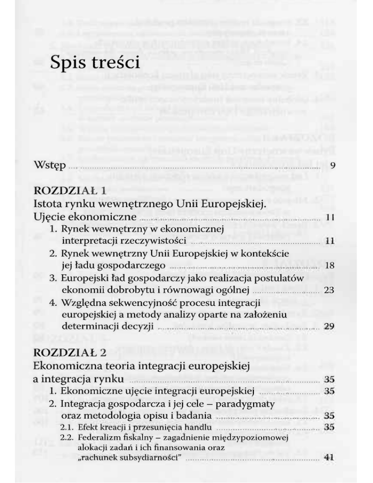 Spis treści Wstęp ROZDZIAŁ 1 Istota rynku wewnętrznego Unii Europejskiej. Ujęcie ekonomiczne 1. Rynek wewnętrzny w ekonomicznej interpretacji rzeczywistości 2. Rynek wewnętrzny Unii Europejskiej w kontekście jej ładu gospodarczego 3. Europejski ład gospodarczy jako realizacja postulatów ekonomii dobrobytu i równowagi ogólnej 4. Względna sekwencyjność procesu integracji europejskiej a metody analizy oparte na założeniu determinacji decyzji ROZDZIAŁ 2 Ekonomiczna teoria integracji europejskiej a integracja rynku 1. Ekonomiczne ujęcie integracji europejskiej 2. Integracja gospodarcza i jej cele - paradygmaty oraz metodologia opisu i badania 2.1. Efekt kreacji i przesunięcia handlu 2.2. Federalizm fiskalny - zagadnienie międzypoziomowej alokacji zadań i ich finansowania oraz „rachunek subsydiarności" 9 11 11 18 23 29 35 35 35 35 41 I Prawo i ekonomia rynku wewnętrznego Unii Europejskiej 2.3. Integracja rynków czynników produkcji a wzrost gospodarczy 2.4. Koordynacja polityk gospodarczych w warunkach integracji. Efekty zewnętrzne, polityka „beggar-thy-neighbour" i „jazda na gapę" 3. Rynek wewnętrzny jako element konsolidacji gospodarczej Unii Europejskiej 4. Globalny kontekst funkcjonowania rynku wewnętrznego Unii Europejskiej ROZDZIAŁ 3 Rynek wewnętrzny Unii Europejskiej a jej ład gospodarczy 1. Ład gospodarczy a unijna regulacja systemu gospodarczego 2. Miejsce rynku wewnętrznego Unii Europejskiej w Delorsowskim modelu ładu gospodarczego 3. Rynek wewnętrzny jako element „otwartej gospodarki rynkowej z wolną konkurencją" ROZDZIAŁ 4 Rynek wewnętrzny i jego swobody 1. Istota rynku wewnętrznego Unii Europejskiej - ujęcie ekonomiczne 2. Rynek wewnętrzny - ujęcie prawne 3. Swobodny przepływ towarów 51 55 60 62 65 65 67 76 79 79 79 80 3.1. Zasadnicza istota swobody 80 3.2. Zasada Cassis de Dijon i doktryna wymogów imperatywnych 83 3.3. Harmonizująca regulacja techniczna Unii Europejskiej oraz wymiana informacji o środkach krajowych stanowiących odstępstwo od zasady wolnego przepływu towarów 93 3.4. Zakaz dyskryminacyjnego opodatkowania towarów 104 4. Swobodny przepływ osób 4.1. Ekonomiczny sens swobodnego przepływu osób 4.2. Ogólna regulacja traktatowa dotycząca swobody przepływu osób 4.3. Zakres skuteczności przepisów traktatowych 106 106 111 113 Spis treści 4.4. Treść uprawnień z art. 45 TFUE 4.5. Legitymowane ograniczenia swobody przepływu osób 5. Swoboda przedsiębiorczości i przepływu usług 5.1. Ekonomiczny sens swobody przedsiębiorczości i swobody przepływu usług 5.2. Istota swobody przedsiębiorczości 5.3. Istota swobody przepływu usług i jej relacja do swobody przedsiębiorczości 5.4. Gospodarczy cel usług i działalności podejmowanej w ramach swobody przedsiębiorczości 5.5. Wymóg transgranicznego charakteru działalności 5.6. Zakres podmiotowy swobody przypływu usług i swobody przedsiębiorczości 5.7. Legitymowane ograniczenia swobody przedsiębiorczości i swobody przepływu usług 5.8. Swoboda świadczenia usług i swoboda przedsiębiorczości a wartości podstawowe 5.9. Uznawanie kwalifikacji 5.10. Tak zwana dyrektywa usługowa 6. Swoboda przepływu kapitału i płatności bieżących 6.1. Ekonomiczny sens swobody przepływu kapitału i płatności bieżących w Unii Europejskiej 6.2. Regulacja traktatowa dotycząca swobody przepływu kapitału i płatności bieżących 6.3. Różnica pomiędzy swobodą przepływu kapitału i swobodą płatności bieżących 6.4. Konkretne postaci przepływu kapitału 6.5. Legitymowane ograniczenia przepływu kapitałów i płatności bieżących (poza szczególną regulacją traktatową) ROZDZIAŁ 5 Unijny system zapewniający niezakłóconą konkurencję na rynku wewnętrznym 1. Ekonomiczna logika niezakłóconej konkurencji na rynku wewnętrznym Unii Europejskiej 1.1. Koncepcja konkurencji 1.2. Preferowane i kontestowane regulacyjnie modele rynku 1.3. Analiza kontekstualna sytuacji przedsiębiorstw z uwzględnieniem konkurencji 2. Główne składniki polityki konkurencji i jej miejsce w modelu gospodarczym Unii Europejskiej 115 124 131 131 133 137 141 144 146 147 151 153 154 157 157 159 161 162 164 169 169 169 173 183 185 7 Prawo i ekonomia rynku wewnętrznego Unii Europejskiej 3. Traktatowe zakazy stosowane w ramach unijnej polityki konkurencji 3.1. Zakaz porozumień monopolistycznych 3.2. Zakaz nadużywania pozycji dominującej 3.3. System nadzoru rynku (rozporządzenie 1/2003/WE) oraz odstępowanie od sankcji 3.4. Zakaz pomocy publicznej 3.5. Szczególna regulacja ochrony konkurencji dotycząca przedsiębiorstw wykonujących usługi w ogólnym interesie gospodarczym 3.6. Kontrola koncentracji przedsiębiorstw 3.7. Konkurencja na unijnym rynku zamówień publicznych ROZDZIAŁ 6 Niektóre wspólne polityki gospodarcze Unii Europejskiej 1. „Wspólność" polityk i ich sens ekonomiczny 2. Wspólna polityka rolna 3. Polityka spójności gospodarczej, społecznej i terytorialnej 3.1. Ekonomiczny sens polityki spójności 3.2. Treść polityki spójności 3.3. Podstawowe założenia regulacyjne polityki spójności 3.4. Miejsce polityki spójności i strukturalnej w konstytucji gospodarczej UE 188 189 195 199 204 208 212 215 223 223 224 229 229 232 234 236 Podsumowanie 239 Wykaz skrótów 243 Wykaz rysunków i tabel 245 Bibliografia 247 Indeks 261