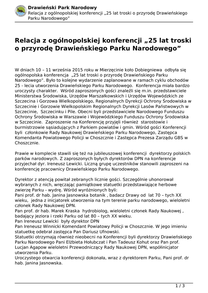 Relacja z ogólnopolskiej konferencji „25 lat troski o przyrodę