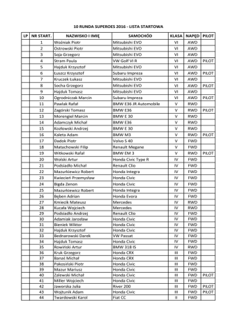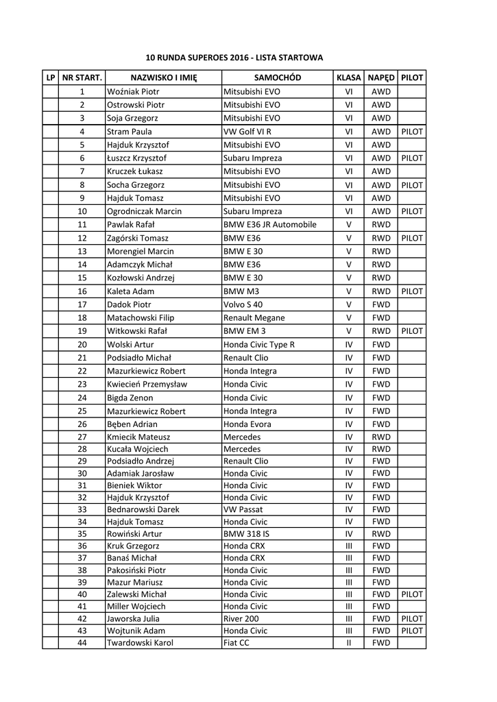 10 RUNDA SUPEROES 2016 - LISTA STARTOWA