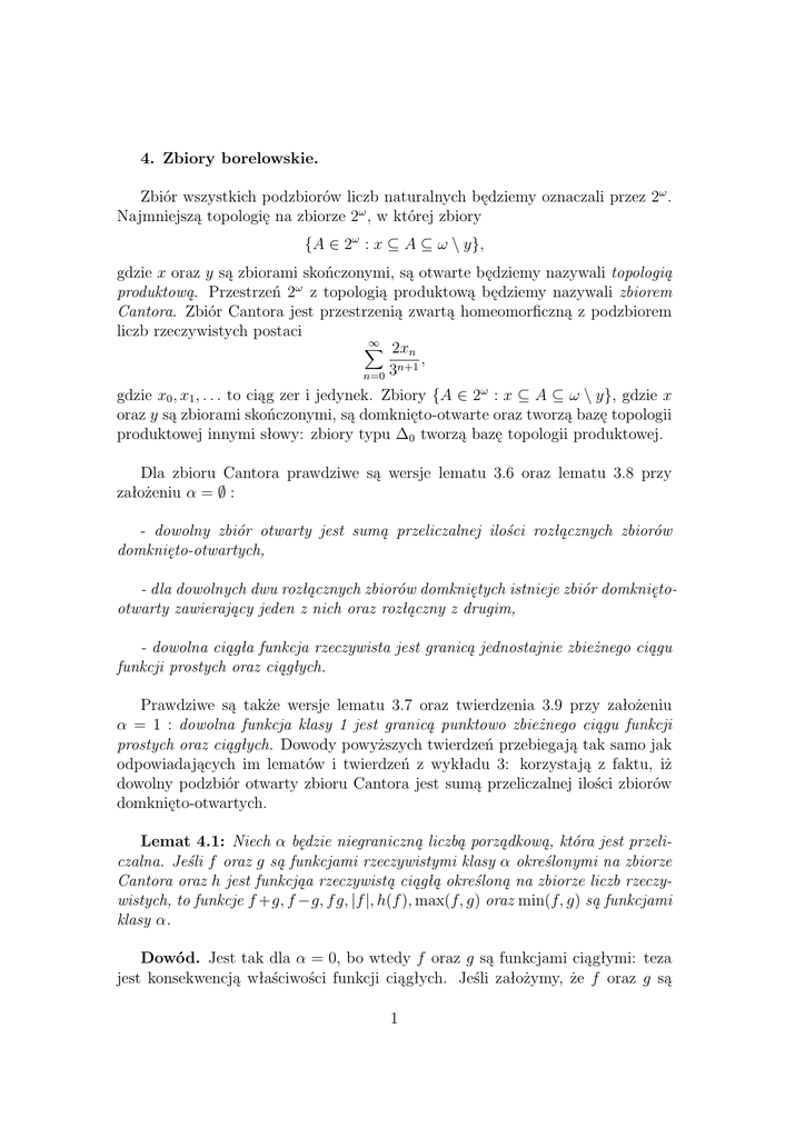 4. Zbiory borelowskie. Zbiór wszystkich podzbiorów liczb
