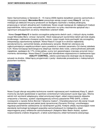 wyglądu. Kolejną cechą stylistyczną, którą Klasa E Coupé dzieli z wersją Saloon, jest mocarny