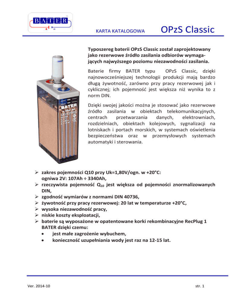 BATER Karta katalogowa OPzS Classic 2014-10