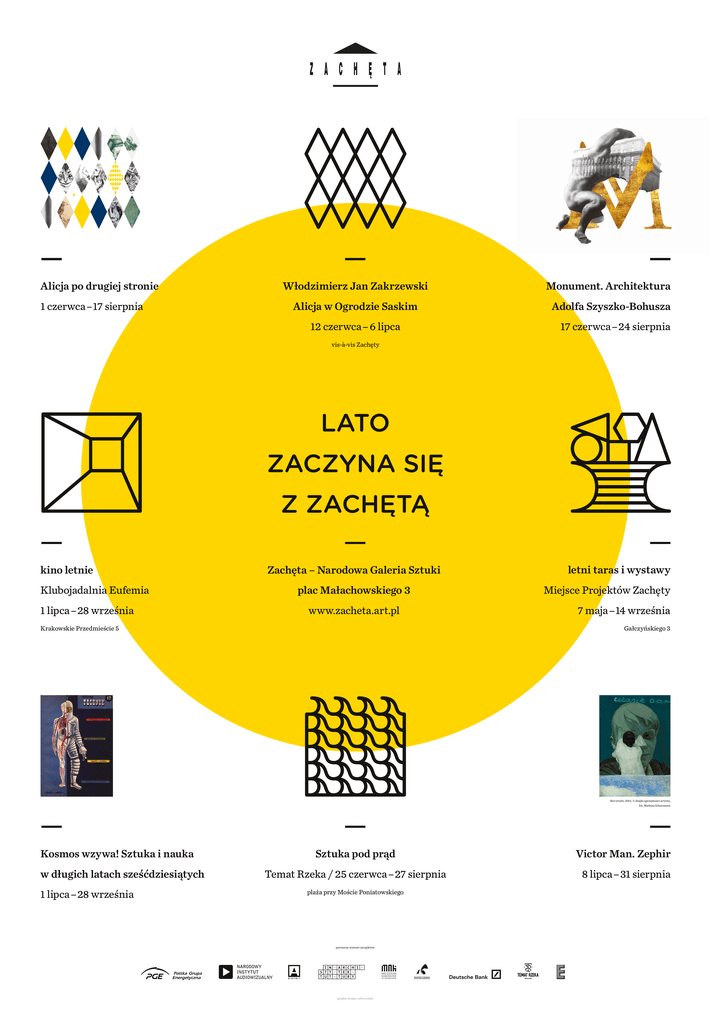 Alicja po drugiej stronie 1 czerwca–17 sierpnia Włodzimierz Jan Zakrzewski Monument. Architektura Alicja w Ogrodzie Saskim Adolfa Szyszko-Bohusza 12 czerwca– 6 lipca 17 czerwca–24 sierpnia vis-à-vis Zachęty LATO ZACZYNA SIĘ Z ZACHĘTĄ kino letnie Klubojadalnia Eufemia 1 lipca–28 września Zachęta – Narodowa Galeria Sztuki plac Małachowskiego 3 www.zacheta.art.pl Krakowskie Przedmieście 5 letni taras i wystawy Miejsce Projektów Zachęty 7 maja–14 września Gałczyńskiego 3 Bez tytułu, 2012, © dzięki uprzejmości artysty, fot. Mathias Schormann Kosmos wzywa! Sztuka i nauka w długich latach sześćdziesiątych 1 lipca–28 września Sztuka pod prąd Victor Man. Zephir Temat Rzeka / 25 czerwca–27 sierpnia 8 lipca–31 sierpnia plaża przy Moście Poniatowskiego partnerzy wystaw i projektów: graphic design: syfon studio