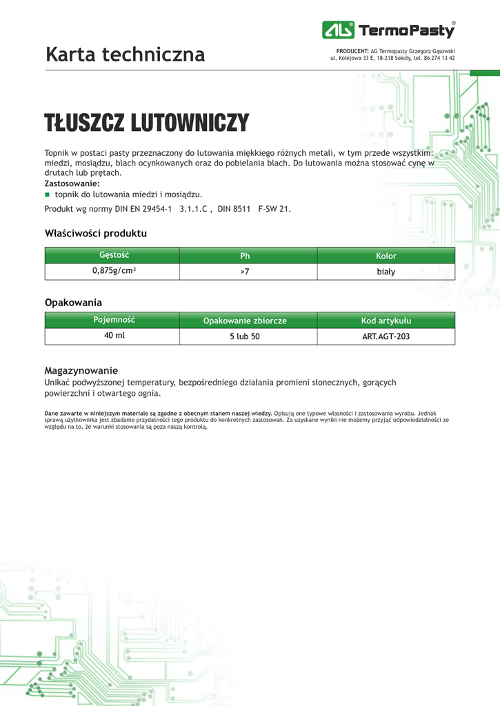 Karta techniczna Tłuszcz lutowniczy pl