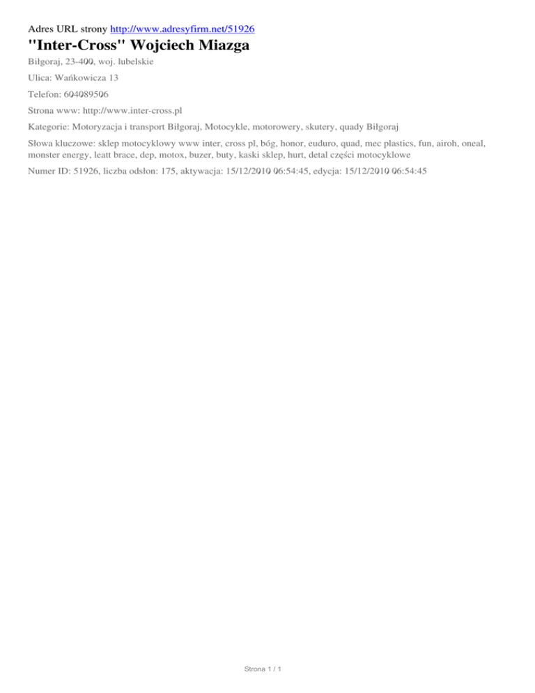 "Inter-Cross" Wojciech Miazga, Bilgoraj, Wankowicza 13