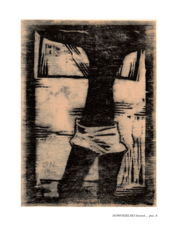 NOWOSIELSKI linoryt… poz. 8 s z t u k a 1. i r z e m i o s ł o BATOWSKI Zygmunt (1876‒1944): Wizerunki Kopernika. Toruń: Tow. Bibljofilów im. Lelewela, 1933. – 99, [5] s., [9] k. tabl.: il., 32 cm, brosz. wyd. Dedykacja Ottona Steinborna (1868‒1936), lekarza i bibliofila dla syna. Monografia poświęcona historycznym wizerunkom astronoma. Okładka ze śladami używania (zbrązowienia i niewielkie zagięcia), czysty egz. Stan ogólny dobry. 100. – 2. BOEHN Max (1860‒1932): Rokoko. Francja w XVIII-tym stuleciu; [przekł. Pawła Hulki-Laskowskiego (1881‒1946)]. Warszawa: Trzaska, Evert i Michalski, [1932]. – IX, [3], 581, [5] s., 15 k. tabl. czterobarwnych, 300 il. w tekście, 26 cm, opr. pł. wyd. tłocz. złotem z barwionym szyldzikiem w oryg. pudełku wyd. Bogato ilustrowana monografia poświęcona nie tylko sztuce rokoka we Francji, ale również epoce, życiu polityczno-społecznemu, kulturze i obyczajowości. Otarcia pudełka, poza tym stan bardzo dobry. 360. – 3. BULKIEWICZ Stanisław: Rudolf Mękicki (1887‒1942). Łódź: Łódzkie Tow. Przyjaciół Książki, 1987. – 16 s., faksym., fot., 24 cm, brosz. wyd. z obwol. Popularna biografia prezentująca do- 5 robek Rudolfa Mękickiego, lwowskiego medaliera, heraldyka, historyka sztuki i wykładowcy Politechniki Lwowskiej oraz autora pierwszego polskiego ekslibrisu numizmatycznego. Referat wygłoszony dnia 8 kwietnia 1987 roku w setną rocznicę urodzin i czterdziestopięciolecia śmierci Rudolfa Mękickiego na zebraniu ŁTPK. Stan bardzo dobry. 60. – 4. [CHASEWICZ Nil (1905‒1952)]: Kniżkowi znaki Nila Chasewicza; priedmowa T.(adeusza) Lesznera (1895‒1967). Warszawa: Spokij, 1939. – 31 s., (10) tabl. w ramach paginacji z naklejanymi ekslibrisami, 24 cm, brosz. wyd. Ekslibrisy w języku polskim i cyrylicą, ukraińskiego artysty Nila Chasewicza, poległego po wojnie jako żołnierza UPA w walce z NKWD. Egzemplarz numerowany z 200 nakładu. Stan bardzo dobry. 120. – 5. CHOMICZ Bolesław (1878‒1959): Budynki ogniotrwałe a tanie. Poradnik dla gospodarzy wiejskich. Warszawa: skł. Gł. Gebethner i Wolff, 1908. – 60, [1] s., 10 rys., oraz: TULISZKOWSKI Józef (1867‒1939): Budowle wiejskie: zdrowe, ogniotrwałe i tanie. Warszawa: skł. Gł. Księgarnia Polska, 1913. – 92 s., 57 rys., 21 cm, współopr. ppł., okł. oryg. drugiej brosz. zachowana (naklejona). Pozycja pierwsza dotyczy zastosowania materiałów ogniotrwałych w budownictwie wiejskim z uwzględnieniem czynników ekonomicznych. Druga propaguje budownictwo wiejskie z szerokim omówieniem budowy domu mieszalnego na wsi, budynków inwentarskich itp. Końcowe rozdziały prezentują ogniotrwałe i tanie ściany oraz różne rodzaje dachów. Przybrudzenia okł., zwłaszcza na odwrocie, wewnątrz stan bardzo dobry. 80. – 6. CICHOCKI Władysław: Papiernictwo. Krótki opis wyrobu papieru, tektury, masy drzewnej, celulozy drzewnej i słomianej. Z 20 rysunkami w tekście, planem maszyny papierniczej, kolorową tablicą oraz 27 próbkami papieru. Warszawa: Wł. Łazarski, 1922. – 62, [8] s., il., [11] k. tabl., 25 cm, brosz. wyd. Podręcznik papiernictwa z wklejonymi próbkami papieru. Zbrązowienia i drobne uszkodzenia okł. na krawędziach, grzbiet podklejony pap., wewnątrz czysty egz. 100. – 6 7. CZAPLIŃSKI Czesław (ur. 1953): Saga rodu Styków. New York: Bicentennial Publishing Corporation, 1988. – 202, [3] s., faksym., fot., il. częściowo rozkładane w ramach paginacji, 22 × 28 cm, brosz. wyd. Bogato ilustrowana (częściowo barwna) monografia twórczości malarskiej rodziny Styków – Adama (1890‒1959), Jana (1858‒1925), twórcy „Panoramy Racławickiej” i Tadeusza (1889‒1954). Tekst równoległy w jęz. ang. i pol. Stan bardzo dobry. 120. – Galeria „krzywe koło” w Warszawie, Rynek Starego Miasta 2, założona przez Grupę 55 i w latach 1956 do 1965 r. prowadzona przez artystę Mariana Bogusza. Celem działania było propagowanie sztuki nowoczesnej. 8. NOWOSIELSKI Jerzy: galeria „krzywe koło” warszawa – wrzesień 1960/jerzy nowosielski. – [4] s. tabl., naklejone 3 reprodukcje obrazów na karton oraz jedna oryginalna grafika „Czarny akt” – linoryt 16 × 10,5 cm, sygnowany ołówkiem: JN 1960. Katalog 24 × 24 cm, w kartonowej okładce z tekstem Aleksandra Wojciechowskiego na wewnętrznej stronie. Jerzy Nowosielski (1923‒2011) – polski malarz, rysownik, scenograf, filozof i teolog prawosławny. Uważany za jednego z najwybitniejszych współczesnych pisarzy ikon. Wnętrze i grafika w stanie b. dobrym, czyste, okładka z drobnymi zaplamieniami. 750. – 9. STAŻEWSKI Henryk: galeria „krzywe koło” – warszawa/stażewski [1961]. – portret w fot. Z.Dłubaka, [4], 28, [4] s., [12] s.tabl., [2] k.tabl., katalog 24 × 24 cm. Naklejone 14 reprodukcji przestrzennych reliefów, 28 s. tekstu na błękitnym papierze żeberkowym zaw. teksty W. Borowskiego, A. Ptaszkowskiej, M. Tchorka. Odręczny podpis artysty pod jego fotograficznym portretem. Dołączony oryginalny gaufrage 7 Henryka Stażewskiego (1894‒1988) – czołowego pioniera klasycznej polskiej awangardy – będący najważniejszym elementem katalogu. Wykaz 26 prezentowanych obrazów. Dodatkowo zaproszenie do galerii na wernisaż w dniu 2.XII.61 (sobota) godz. 19‒21 rynek st. miasta 2. Stan b. dobry, nieznaczne przebarwienia okładki. 1 200. – 10. ŚLESIŃSKA Alina: galeria „krzywe koło” warszawa – sierpień 1960/alina ślesińska. – [4] s. tabl., naklejone 3 reprodukcje rzeźb na karton oraz jedna oryginalna grafika „Kompozycja”, litografia barwna 20 × 20 cm. Katalog 24 × 24 cm, w kartonowej okładce z tekstem Aleksandra Wojciechowskiego na wewnętrznej stronie. Ślesińska (1922‒1994) uprawiała przede wszystkim rzeźbę, ale także malarstwo, rysunek i tkaninę artystyczną. Wykonywała również projekty architektoniczne. Stan b. dobry, nieznaczne przebarwienia okładki. 300. – 8 11. TARASIN Jan: galeria „krz