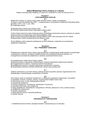 Statut Miejskiego Domu Kultury w Lubaniu - BIP