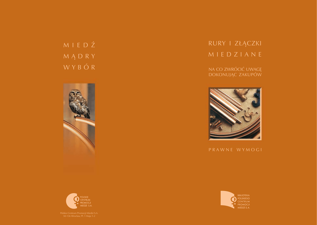 M I E D Ź RURY I ZŁĄCZKI MĄDRY M I E D Z I A N E WYBÓR NA CO ZWRÓCIĆ UWAGĘ DOKONUJĄC ZAKUPÓW PRAWNE WYMOGI Polskie Centrum Promocji Miedzi S.A. 50-136 Wrocław, Pl. 1 Maja 1-2 9 2 Szanowni PPaństwo, aństwo, w ostatnich latach mamy możliwość szerokiego wyboru materiałów instalacyjnych. W związku z tym umiejętność oceny oferowanego towaru jest niezwykle trudna i często niewiedza o podstawowych wymogach stawianych danemu towarowi może pociągnąć za sobą konsekwencje techniczne i finansowe. Poniższa broszura opisuje prawne wymogi stawiane producentom rur i złączek miedzianych oraz przedstawia jakich dokumentów powinniśmy zażądać od sprzedawcy tych wyrobów. Staramy się Państwu przekazać w jaki sposób sprawdzić czy dany wyrób jest dopuszczony do sprzedaży w Polscy, czy spełnia techniczne normy oraz czy jest prawidłowo oznakowany i opakowany. Polskie Centrum Promocji Miedzi Rys. 3 Certyfikat zgodności 3 8 Wyroby dopuszczone do obrotu i powszechnego stosowania W przypadku rur i łączników miedzianych przeznaczonych do stosowania w instalacjach wodociągowych i ogrzewania w budownictwie, kupujący powinien przede wszystkim zwrócić uwagę, czy dany wyrób jest dopuszczony do obrotu i powszechnego stosowania w Polsce. Zgodnie z Ustawą z dnia 7 lipca 1994 r. Prawo Budowlane [Dz.U. Nr 89 z dnia 15 sierpnia 1994 r. poz. 414] wraz z pózniejszymi zmianami, wyroby takie powinny posiadać dokument dopuszczający do obrotu i stosowania w budownictwie jakim jest deklaracja zgodności (wydana przez producenta wyrobu) lub certyfikat zgodności (wydany przez jednostkę niezależną upoważnioną do certyfikacji) z polską normą lub Aprobatą Techniczną, które stanowią dokumenty odniesienia. W przypadku rur miedzianych takim dokumentem odniesienia jest Polska Norma PN-EN 1057:1999 1057:1999, a w przypadku łączników ważna Aprobata Techniczna wydana przez COBRTI „Instal”. (Wzór pierwszej strony Aprobaty podany jest na rys.1). Wzór deklaracji zgodności podany jest w Rozporządzeniu Ministra Spraw Wewnętrznych i Administracji z dnia 31.07.1999 [Dz.U. nr 113 z 1998 poz. 728] i przedstawiony jest na rys. 2. Certyfikat zgodności z dokumentem odniesienia wydaje niezależna jednostka certyfikująca, która na drodze akredytacji w Polskim Centrum Badań i Certyfikacji zdobyła uprawnienia do wydawania takich orzeczeń. (Wzór certyfikatu zgodności przedstawiony jest na rys. 3). Rys. 2 Wzór deklaracji zgodności 7 4 Znak owanie wyrobów Znakowanie Drugim, ważnym elementem na który powinien zwrócić uwagę kupujący rury lub łączniki miedziane jest ich sposób znakowania i postać dostawy. Rury miedziane powinny być trwale znakowane na obwodzie wzdłuż długości rury z podaniem przynajmniej następujących danych: znak identyfikujący wytwórcę, numer normy (PN-EN 1057), nominalnych wymiarów przekroju poprzecznego: średnica zewnętrzna x grubość ścianki, symbol III identyfikujący stan R 250 (półtwardy) - jeśli rury są w tym stanie daty produkcji: rok i kwartał (I do IV) lub rok i miesiąc (1 do 12). (Przykład znakowania rur miedzianych podano na rys. 4). W przypadku łączników miedzianych, z brązu lub mosiężnych na korpusie w sposób trwały powinny być umieszczone następujące dane: znak identyfikujący wytwórcę, wymiar nominalny kielicha lub bosego końca, wymiar gwintu (w przypadku łączników gwintowanych). (Przykład znakowania łączników podano na rys. 5). Ponadto wyroby te (rury i łączniki) - zgodnie z Rozporządzeniem Ministra Spraw Wewnętrznych i Administracji z dnia 31 lipca 1998 r. (Dz. U. Nr 113 z 1998 r. poz. 728) powinny być dodatkowo oznakowane znakiem „B” (rys. 6) dopuszczenia do obrotu i powszechnego stosowania w budownictwie. Znak taki powinien być umieszczony bezpośrednio na wyrobie lub opakowaniu, bądź na etykiecie. Rys. 1 Przykładowa pierwsza strona aprobaty technicznej 5 6 Sposób pak owania wyrobów pakowania Ponadto należy zwrócić uwagę na sposób pakowania dostarczanego towaru. Zaleca się, aby rury miedziane były zabezpieczone korkami i pakowane w wiązkach (rury proste) o masie od 300 do 600 kg. Narożniki wiązek powinny być zabezpieczone papierem kartonowym. Rury w kręgach powinny być opakowane papierem kartonowym i układane płasko na drewnianej palecie. Łączniki powinny być dostarczane w opakowaniach jednostkowych lub zbiorczych np. workach foliowych. W opakowaniu zbiorczym powinny się znajdować wyroby z tego samego materiału, jednego typu i wymiaru. Do każdej wiązki lub kręgu rur powinna być przymocowana etykieta (w przypadku łączników na opakowaniu), zawierająca: nazwę materiału, postać lub stan, bądź typ, wymiary, nr partii, ewentualnie znak dopuszczenia do obrotu (jeżeli nie jest umieszczony w innym miejscu). upujący powinien: Reasumując, kkupujący żądać od dostawcy przedłożenia odpowiedniego dokumentu dopuszczającego wyrób do obrotu i stosowania w budownictwie w formie certyfikatu lub deklaracji zgodności danej partii rur na zgodność z normą PN-EN 1057, a w przypadku łączników z ważną Aprobatą Techniczną wydaną przez COBRTI Instal, sprawdzić sposób znakowania wyrobu, szczególnie zwrócić uwagę na znak producenta i czy deklaracja lub certyfikat dotyczy właśnie tego producenta i tej partii wyrobu, domagać się odpowiedniego sposobu pakowania i dostawy wyrobu, kupujący może żądać wyników badań kontrolnych rur lub łączników zgodnie z przedłożoną deklaracją zgodności. 5 6 Sposób pak owania wyrobów pakowania Ponadto należy zwrócić uwagę na sposób pakowania dostarczanego towaru. Zaleca się, aby rury miedziane były zabezpieczone korkami i pakowane w wiązkach (rury proste) o masie od 300 do 600 kg. Narożniki wiązek powinny być zabezpieczone papierem kartonowym. Rury w kręgach powinny być opakowane papierem kartonowym i układane płasko na drewnianej palecie. Łączniki powinny być dostarczane 