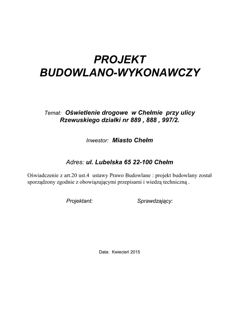 PROJEKT BUDOWLANO-WYKONAWCZY Temat: Oświetlenie drogowe w Chełmie przy ulicy Rzewuskiego działki nr 889 , 888 , 997/2. Inwestor: Miasto Chełm Adres: ul. Lubelska 65 22-100 Chełm Oświadczenie z art.20 ust.4 ustawy Prawo Budowlane : projekt budowlany został sporządzony zgodnie z obowiązującymi przepisami i wiedzą techniczną . Projektant: Sprawdzający: Data: Kwiecień 2015 SPIS ZAWARTOŚCI 1.PODSTAWA OPRACOWANIA. 2. ZAKRES OPRACOWANIA. 3.OPIS TECHNICZNY. 3.1. STAN ISTNIEJĄCY . 3.2. ZASILANIE OŚWIETLENIA. 3.3. POMIAR ENERGII ,STEROWANIE OŚWIETLENIEM. 3.4. LINIA KABLOWA N.N. 3.5.OCHRONA PRZECIWPORAŻENIOWA . 3.6.UWAGI KOŃCOWE . 4.OBLICZENIA TECHNICZNE : 4.1.DOBÓR BEZPIECZNIKÓW KABLI I PRZEWODÓW . 4.2.OBLICZENIA ZWARĆ JEDNOFAZOWYCH : 4.2.1. ZWARCIE W SŁUPIE NR 6. 5.ZESTAWIENIE MATERIAŁÓW : INFORMACJA DOTYCZĄCA BEZPIECZEŃSTWA I OCHRONY ZDROWIA 2 1.PODSTAWA OPRACOWANIA. Projekt opracowano na podstawie : • zlecenia inwestora • warunków przyłączenia nr 00690/RE07/2015 z dnia 02.03.2015r wydanych przez RE Chełm • PN-76/E-05125 – linie kablowe, • PN-76/E-02032 – dot. oświetlenia dróg publicznych, • PN-91/E-05009 – ochrona od porażenia w urządzeniach do 1kVi Rozporządzenie Ministra Przemysłu Nr 473 z dnia 08.10.1990r.w sprawie warunków technicznych jakim powinny odpowiadać urządzenia elektroenergetyczne w zakresie ochrony przeciwporażeniowej, • Przepisy Budowy Urządzeń Elektrycznych, 2. ZAKRES OPRACOWANIA. Projekt obejmuje swoim zakresem : wykonanie oświetlenia drogowego wzdłuż ulicy Rezwuskiego w Chełmie przebudowę części zalicznikowej istniejącej szafki oświetleniowej • • 3.OPIS TECHNICZNY. 3.1. Stan istniejący . W chwili obecnej przy ulicy Rzewuskiego w Chełmie brak jest oświetlenia ulicznego. 3.2. Zasilanie oświetlenia. Zgodnie z WP nr 00690/RE07/2015 z dnia 02.03.2015r. projektowany obwód oświetleniowy zasilić z istniejącej szafki oświetleniowej SO , składającej się z części pomiarowej i sterującej oświetleniem zainstalowanej w pobliżu istniejącej stacji K-328. Z szafy SO wyprowadzony jest jeden obwód oświetleniowy . Szafa oświetleniowa zasilana jest kablem YAKY 4x70mm2 z RNN w stacji K328. Dla potrzeb projektowanego oświetlenia należy z istniejącej szafy SO wyprowadzić obwód oświetleniowy kablem YKY 3x6mm2. W części zalicznikowej szafy należy zainstalować zabezpieczenia typu S301C10 . Plan trasy linii kablowej z oświetleniem ulicznym pokazano na rysunku nr 1 . Oświetlenie będzie wykonane na słupach metalowych dł.6m cylindrycznych typu S60PC na fundamentach F100/200 z wysięgnikiem „St” 1.5m produkcji Elektromontaż Rzeszów z oprawami ROSA typu CUDDLE LED 96 . W każdym słupie zainstalowana będzie typowa tabliczka słupowa zawierająca listwę zaciskową do podłączenia kabli - wchodzącego i wychodzącego oraz zabezpieczenie obwodu oprawy - wyłącznik instalacyjny S301C2 A na znormalizowanej listwie montażowej IZK. 3 3.3. Pomiar energii ,sterowanie oświetleniem. Istniejący układ pomiarowy wraz zabezpieczeniami przelicznikowymi typu S303B25A w szafie oświetleniowej SO pozostaje bez zmian. Sterowanie załączaniem oświetlenia za pomocą zegara sterującego astronomicznego PSO oraz ręcznie . 3.4. Linia kablowa n.n. Projektowane kable układać zgodnie z trasą pokazaną na podkładzie geodezyjnym. Kabel układać w wykopie o głębokości 70 cm na 10-centymetrowej warstwie piasku. Kabel należy przysypać 10-centymetrową warstwą piasku,15-centymetrową warstwą ziemi rodzimej ,zabezpieczyć folią niebieską ,którą przysypać ziemią. W wykopie kabel należy układać faliście z 3% zapasem. Na kabel należy założyć oznaczniki kablowe ASTE-FASTENER z opisem rodzaju i przekroju kabla ,wykonawcy trasy kabla ,daty ułożenia i użytkownika. Kable wprowadzane do słupów i szafy oświetlenia ulicznego należy układać w rurze AROTA Ø 50 na długości 0,5m. Przy skrzyżowaniu kabla z istniejącym uzbrojeniem terenu kabel chronić rurą przepustową AROT DVK 75x63 , przy skrzyżowaniu kabla z drogą utwardzoną kabel chronić rurą przepustową AROT SRS 75x66 . Przejście kabla pod drogą wykonać metodą przewiertu. 3.5.Ochrona przeciwporażeniowa . Jako system ochrony dodatkowej zastosowano samoczynne szybkie wyłączenie obwodu oświetleniowego przy użyciu zabezpieczenia nadmiarowo prądowego. Układ sieci instalacji odbiorczej oprawy TN-C. Obliczeniowa impedancja pętli zwarcia do najdalej położonej lampy jest wystarczająca dla prądu zwarciowego zabezpieczenia 10A i wyłączenia zasilania w czasie 0,4s, co potwierdzają załączone obliczenia elektryczne. Rozdział przewodu PEN na PE i N w szafie oświetleniowej . Miejsce rozdziału przewodu uziemione – uziemienie sprawdzić pomiarem. Taśma stalowa ocynkowana FeZn 25x4mm będzie stanowić przewód ochronny PE. Taśmę uziemiającą układać na gł. 0,8m w rowie kablowym min 20cm obok kabla na całej długości trasy linii kablowej a odgałęzienia podłączyć do zacisków uziemiających słupów. Połączenia uziomów wykonać przez spawanie lub łączenie dwoma śrubami M10 i zabezpieczyć przed korozją połączeń spawanych malowaniem lakierem asfaltowym, natomiast połączenia skręcane wazeliną techniczną, bezkwasową i zabezpieczyć przez owinięcie miejsca połączenia folią. Po wykonaniu robót dokonać pomiaru skuteczności ochrony, rezystancji uziemienia i oporności izolacji i kabla oraz sporządzić protokoły pomiarów. 3.6.Uwagi końcowe . • Prace na czynnych urządzeniach elektrycznych należy wykonać po uzyskaniu zgody ich użytkownika oraz wyłączeniu spod napięcia. • Całość prac wykonać zgodnie z obowiązującymi normami i przepisami. • Za nieistotne odstąpienie od niniejszego projektu uznaje się zastosowanie równoważnych • urządzeń . Dobrane w projekcie urządzenia mogą zostać zastąpione innymi urządzeniami , jednak z zachowaniem identycznych parametrów technic