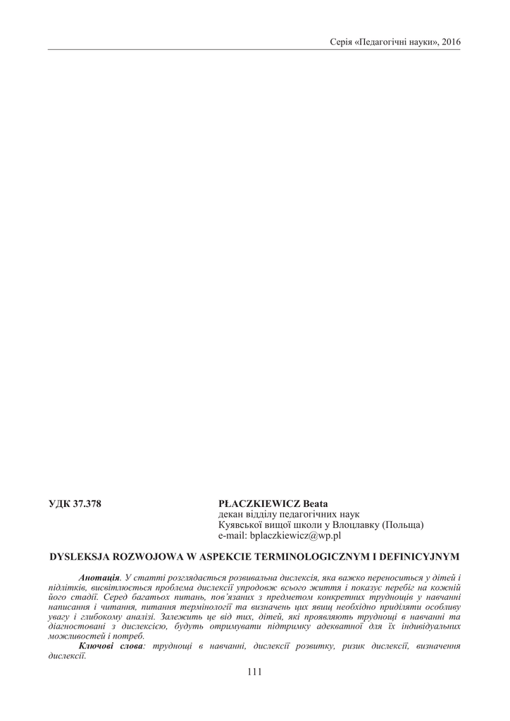 111 УДК 37.378 PŁACZKIEWICZ Beata декан