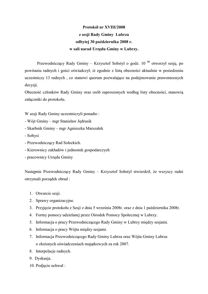 Protokó³ nr XVIII - Urząd Gminy w Lubrzy